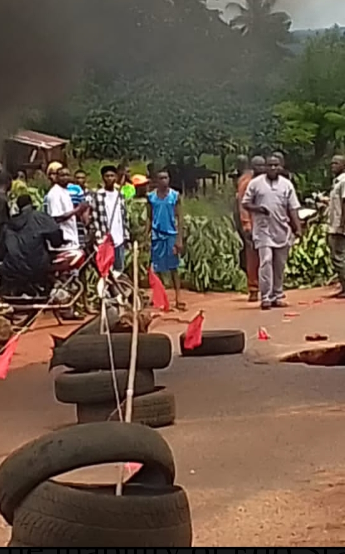 A youth leader who does not want his name in print disclosed that they resolved to block the road to vehicles to protest against government neglect and also to arrest the deterioration of the road.